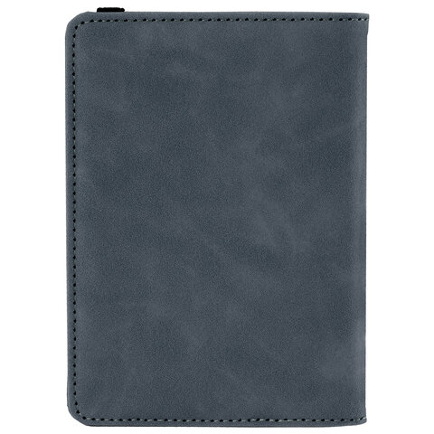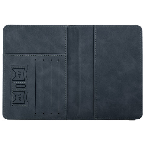 Обложка для паспорта и документов с защитой от считывания, 9 карманов, резинка, экокожа, темно-голубая, BRAUBERG, 238752