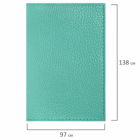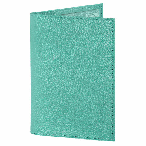 Обложка для паспорта натуральная кожа флоттер, кожаный уголок, мятная, BRAUBERG, 238862