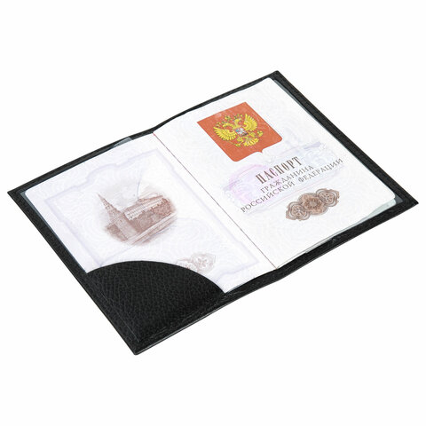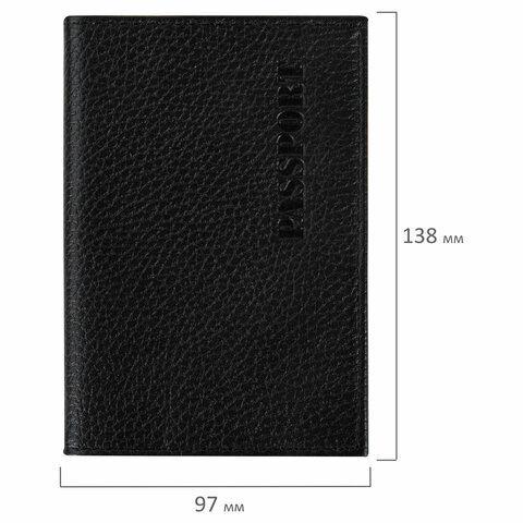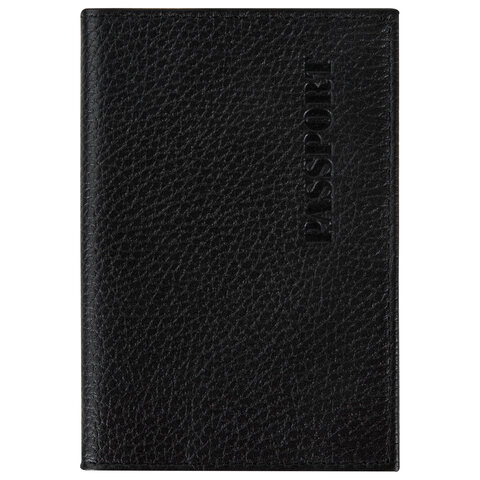 Обложка для паспорта натуральная кожа флоттер, "PASSPORT", кожаный уголок, черная, BRAUBERG, 238192