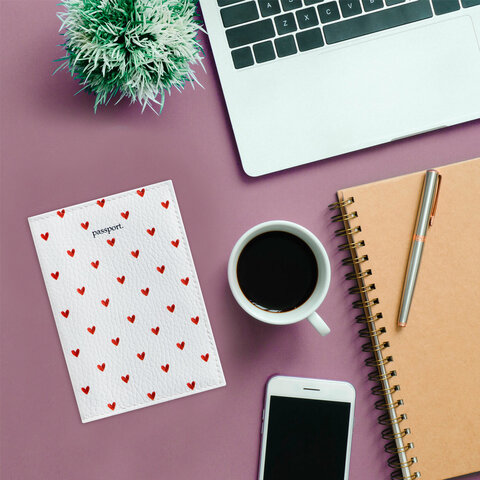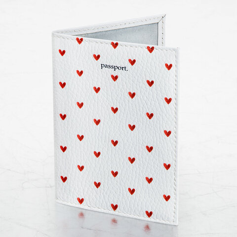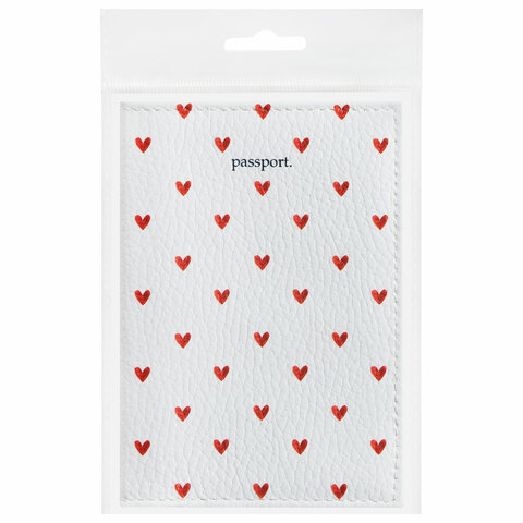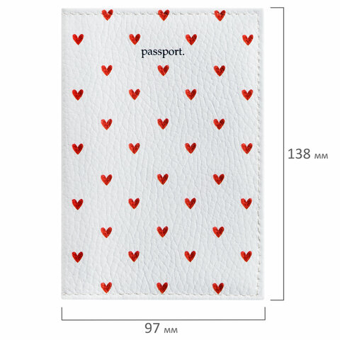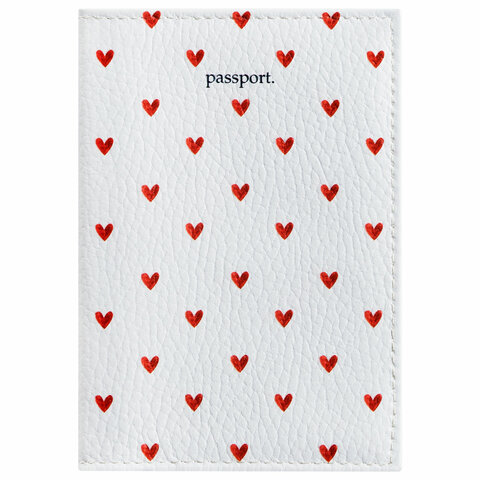 Обложка для паспорта натуральная кожа флоттер, принт "Сердечки", цвет белый, BRAUBERG, 238866