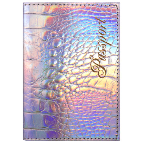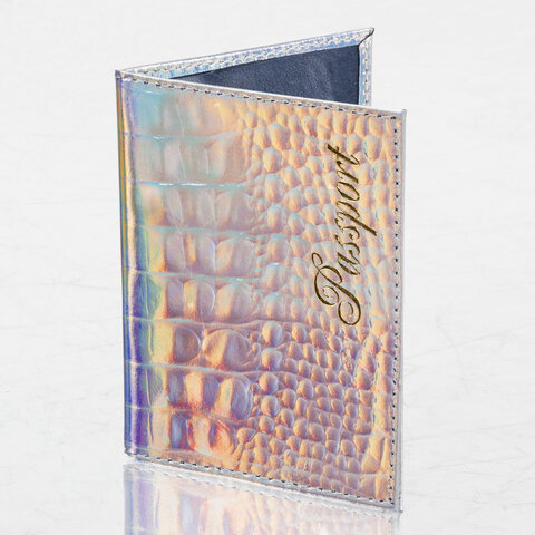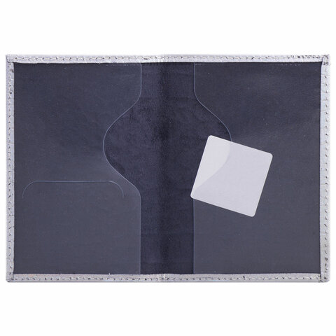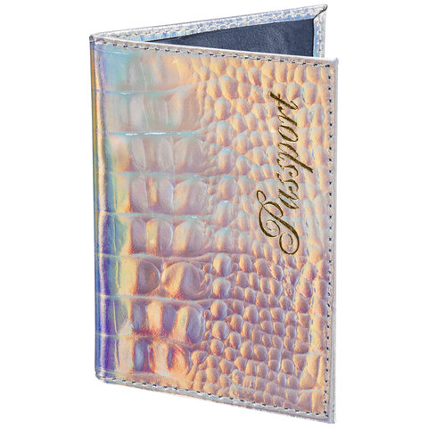 Обложка для паспорта натуральная кожа кайман, "PASSPORT", серебристая, STAFF "Profit", 237206