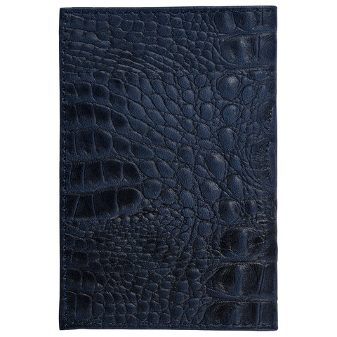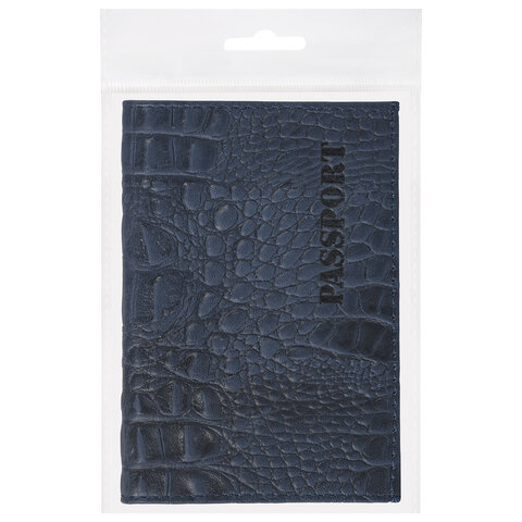 Обложка для паспорта натуральная кожа кайман, "PASSPORT", темно-синяя, BRAUBERG, 237196