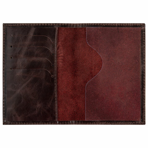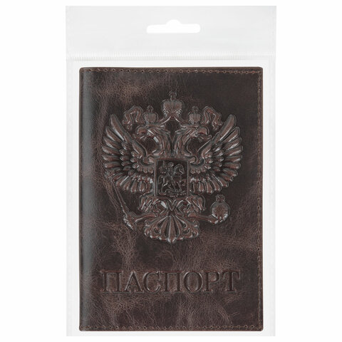 Обложка для паспорта натуральная кожа пулап, 3D герб + тиснение "ПАСПОРТ", темно-коричневая, BRAUBERG, 238194