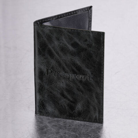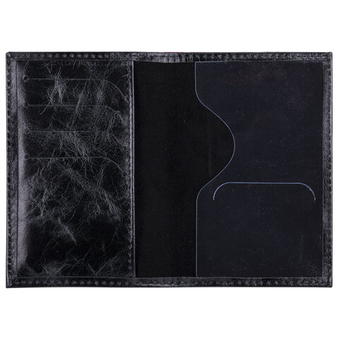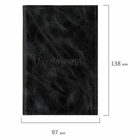 Обложка для паспорта натуральная кожа пулап, "Passport", кожаные карманы, черная, BRAUBERG, 238198