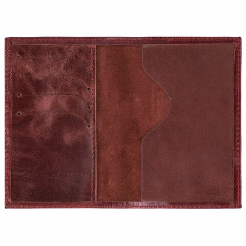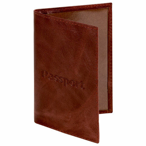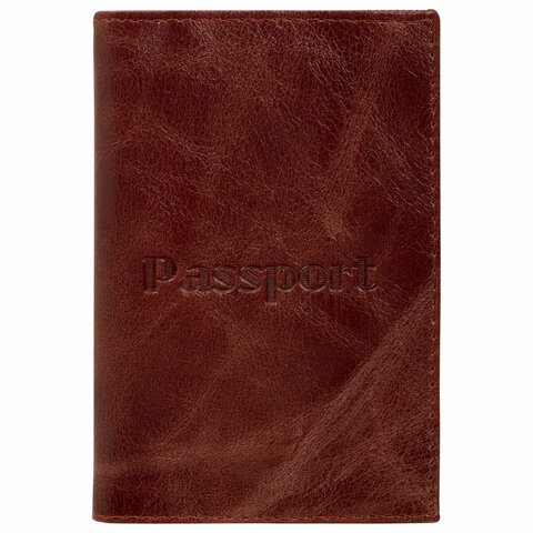 Обложка для паспорта натуральная кожа пулап, "Passport", кожаные карманы, коричневая, BRAUBERG, 238197