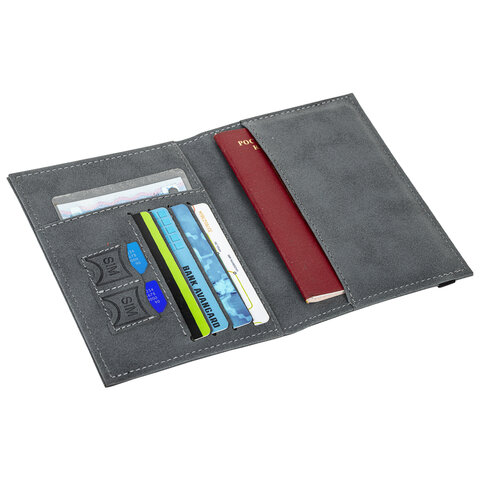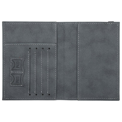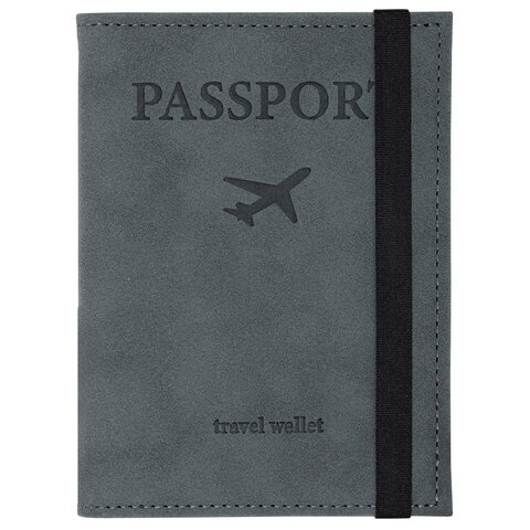 Обложка для паспорта с карманами и резинкой, мягкая экокожа, "PASSPORT", серая, BRAUBERG, 238203