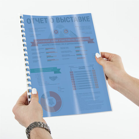 Обложки пластиковые для переплета, А4, КОМПЛЕКТ 100 шт., 150 мкм, прозрачно-синие, BRAUBERG, 530826