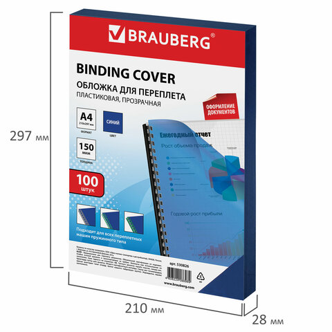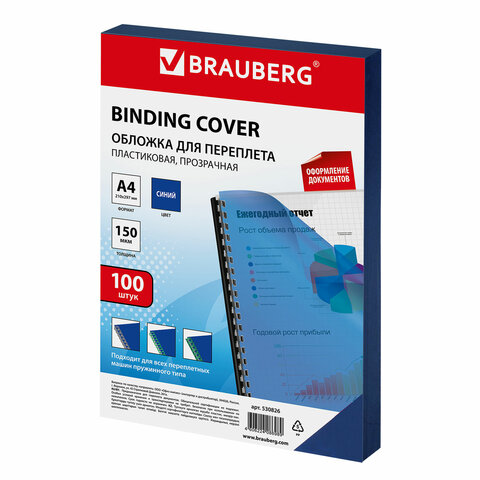 Пластиковые обложки BRAUBERG придадут документам эстетичный внешний вид и защитят от повреждений. Предназначены для переплета документов брошюровщиком с помощью пластиковых и металлических пружин.