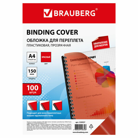 Пластиковые обложки BRAUBERG придадут документам эстетичный внешний вид и защитят от повреждений. Предназначены для переплета документов брошюровщиком с помощью пластиковых и металлических пружин.