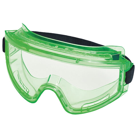 Очки с непрямой вентиляцией с панорамным защитным бесцветным стеклом с покрытием Абсолют. Мягкий корпус из ПВХ. Регулируемая наголовная лента.