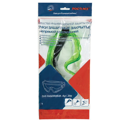 Очки защитные закрытые РОСОМЗ ЗН11 Panorama, прозрачные, непрямая вентиляция, поликарбонат, 21111
