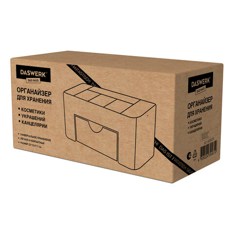 Универсальный органайзер DASWERK предназначен для хранения канцелярских товаров, украшений, маникюрных инструментов, кистей, бижутерии, духов, аксессуаров, косметики и многого другого.