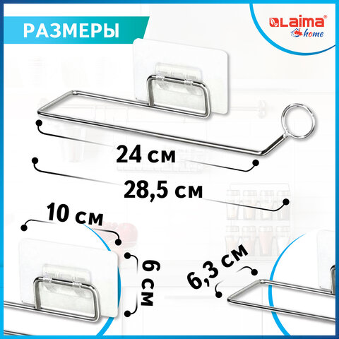 Держатель для бумажных полотенец и рулонных салфеток самоклеящийся, хром, LAIMA HOME, 607998
