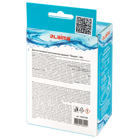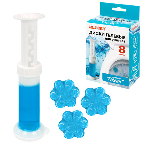Диски гелевые, освежитель и очиститель для унитаза / писсуара, 8 дисков 44 г, LAIMA, "Океан", шприц, 609796