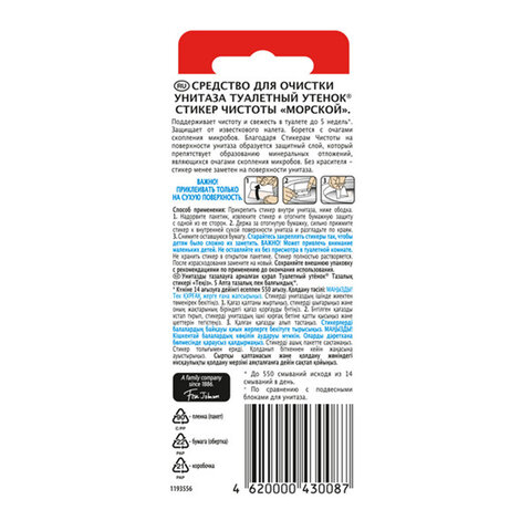 Освежитель/очиститель для унитаза/писсуара ТУАЛЕТНЫЙ УТЕНОК "Морской" поддерживают чистоту и свежесть в туалете до 5 недель. Защищают от известкового налета, борются с очагами скопления микробов. Не нужно заменять и прикасаться к грязным блокам.