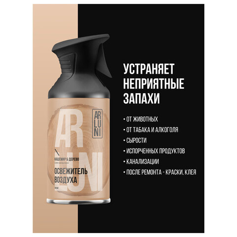 Освежитель воздуха 250мл ARLUNI "Кашемир и дерево" с триггером – это эффективный аэрозольный ароматизатор для помещений