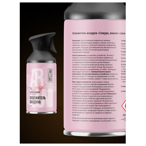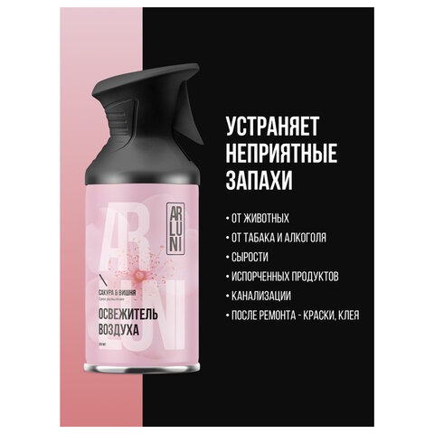 Освежитель воздуха 250мл ARLUNI "Сакура и вишня" с триггером – это эффективный аэрозольный ароматизатор для помещений.