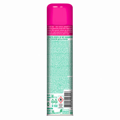 Аэрозоль-освежитель воздуха AIRWICK "Мальдивские мечты" из новой коллекции "Ароматы мира" эффективно борется с неприятными запахами, создавая романтическое настроение с легкими освежающими ароматами тропических цветов и пачули.