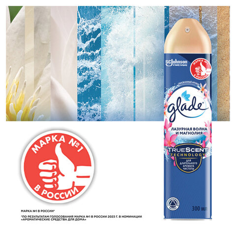 Освежитель воздуха аэрозольный 300 мл, GLADE "Лазурная волна и магнолия", 864950