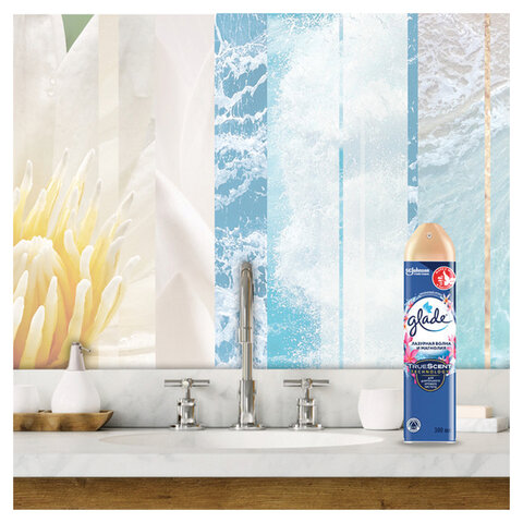 Бодрящие морские и цитрусовые ноты, дополненные цветочным ароматом, создадут у вас дома непередаваемую атмосферу ароматического блаженства. GLADE гарантирует безопасность и экспертную формулу своих аэрозолей!