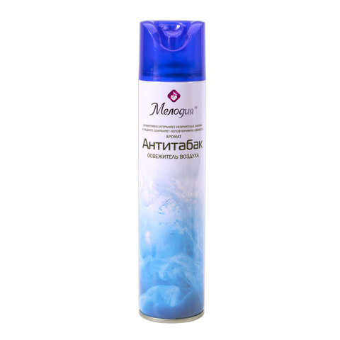 Освежитель воздуха МЕЛОДИЯ "Антитабак" быстро и эффективно устраняет неприятные запахи и освежает воздух в жилых и бытовых помещениях. Имеет приятный стойкий аромат, который надолго наполнит помещение свежестью.