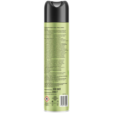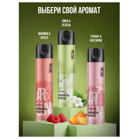 Освежитель воздуха аэрозольный 300мл ARLUNI "Липа и зелень", устранение неприятных за