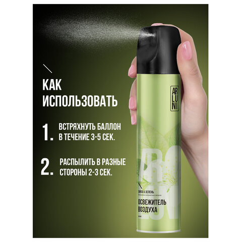 Освежитель воздуха аэрозольный 300мл ARLUNI "Липа и зелень" — это современное средство бытовой химии для создания приятной атмосферы в доме и устранения неприятных запахов.