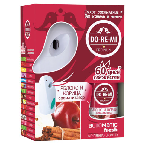 Автоматический диспенсер с освежителем воздуха DO-RE-MI "Яблоко и корица" подарит вашему дому комфорт, уют, свежесть яблока и аромат корицы.