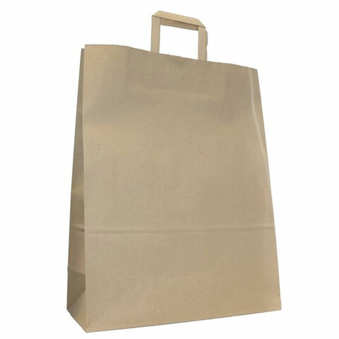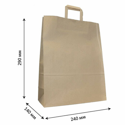 Крафт-пакет бумажный 24х14х29 см, плоские ручки, плотность 90 г/м2, 110517