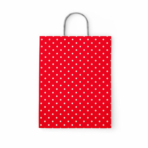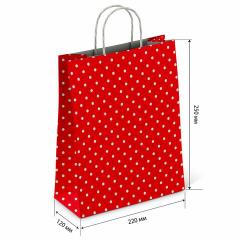 Крафт-пакет бумажный "Горох на красном" 22х12х25 см, с кручеными ручками, 100 г/м2, белый, 112979