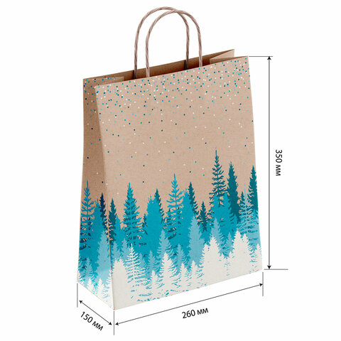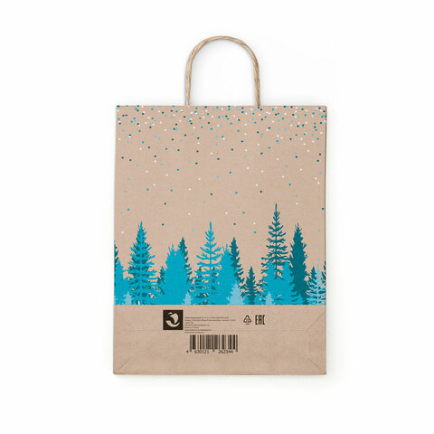 Крафт-пакет бумажный "Лес" 26х15х35 см, с кручеными ручками, плотность 80 г/м2, 112498
