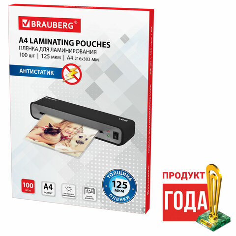 Пленки-заготовки для ламинирования АНТИСТАТИК, А4, КОМПЛЕКТ 100 шт., 125 мкм, BRAUBERG, 531794