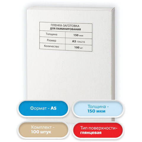 Пленки-заготовки для ламинирования МАЛОГО ФОРМАТА, А5, КОМПЛЕКТ 100 шт., 150 мкм, BRAUBERG, 531783