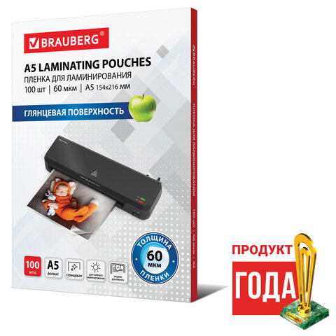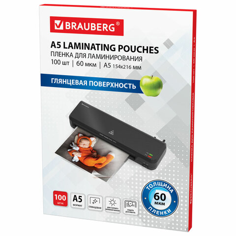 Пленки-заготовки для ламинирования МАЛОГО ФОРМАТА, А5, КОМПЛЕКТ 100 шт., 60 мкм, BRAUBERG, 531782