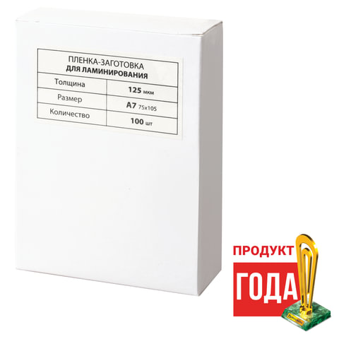 Пленки-заготовки для ламинирования МАЛОГО ФОРМАТА, А7, КОМПЛЕКТ 100 шт., 125 мкм, BRAUBERG, 531787