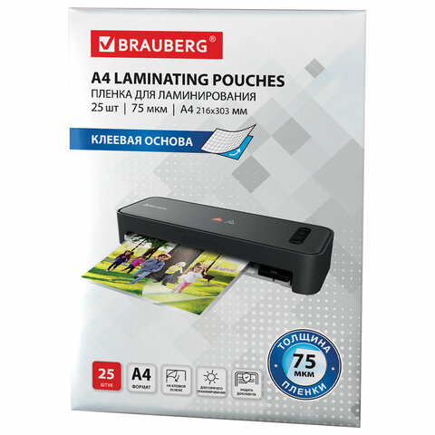 Пленки-заготовки для ламинирования НА КЛЕЕВОЙ ОСНОВЕ, А4, КОМПЛЕКТ 25 штук, 75 мкм, BRAUBERG, 531798
