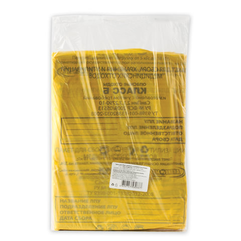 Мешки для мусора медицинские КОМПЛЕКТ 20 шт., класс Б (желтые), 100 л, 60х100 см, 14 мкм