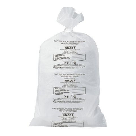 Мешки для мусора класса А (белого цвета) помогут обеспечить лечебно-профилактическим учреждениям безопасную утилизацию нетоксичных отходов – пищевых отходов, палатного мусора, инвентаря, деталей мебели.
