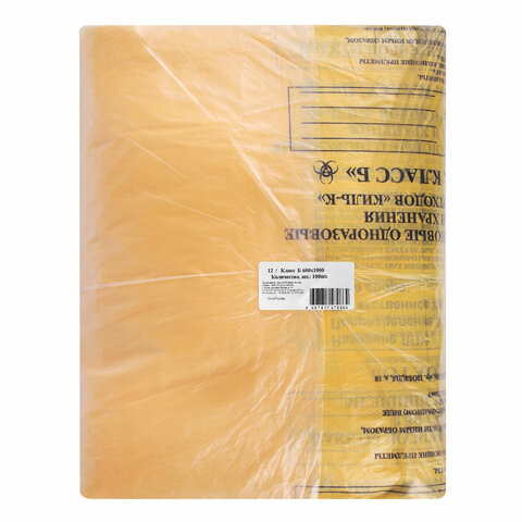Пакеты для медицинских отходов КОМПЛЕКТ 100 шт., класс Б (желтые) 100 л, 60х100 см, 12 мкм, ПТП "Киль"