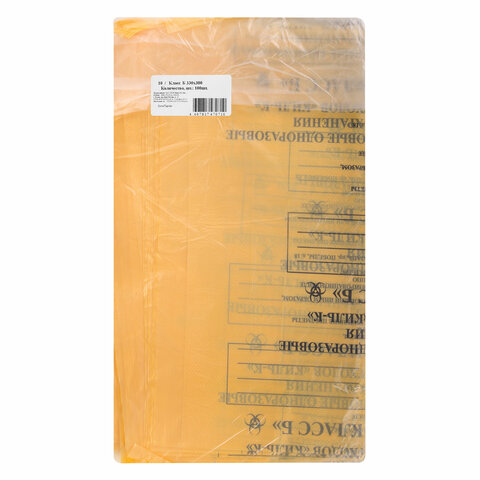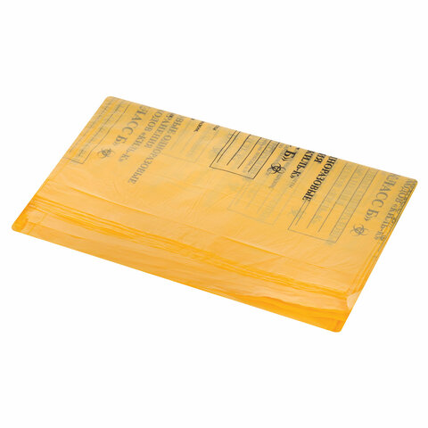 Пакеты для медицинских отходов КОМПЛЕКТ 100 шт., класс Б (желтые) 5 л, 33х30 см, 10 мкм, ПТП "Киль"