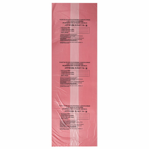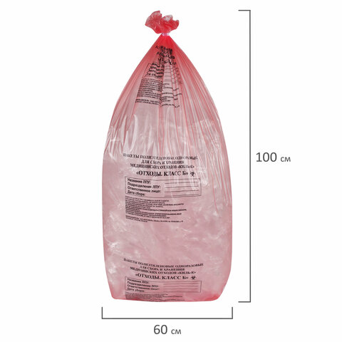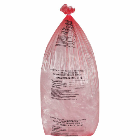 Пакеты для медицинских отходов КОМПЛЕКТ 100 шт., класс В (красные) 100 л, 60х100 см, 12 мкм, ПТП "Киль"
