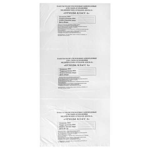 Пакеты для медицинских отходов КОМПЛЕКТ 50 шт., класс А (белые) 60 л, 70х80 см, 16 мкм, ПТП "Киль"