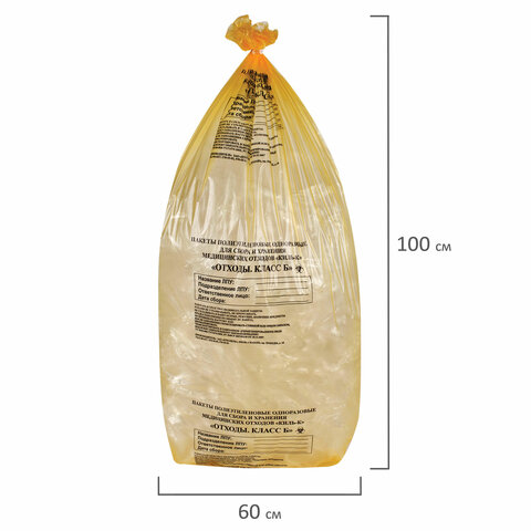 Пакеты для медицинских отходов КОМПЛЕКТ 50 шт., класс Б (желтые) 100 л, 60х100 см,16 мкм, ПТП "Киль"