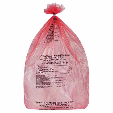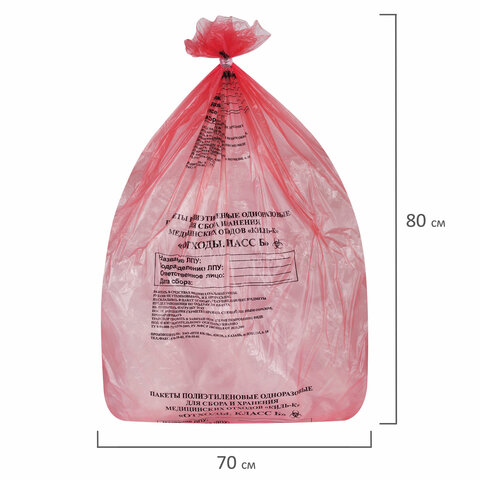 Пакеты для медицинских отходов КОМПЛЕКТ 50 шт., класс В (красные) 60 л, 70х80 см, 16 мкм, ПТП "Киль"