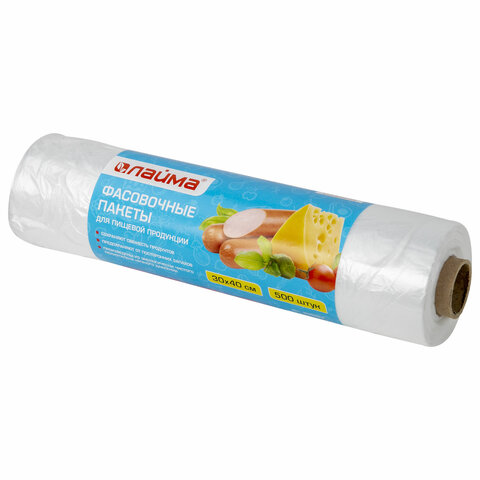 Пакеты фасовочные 30х40 см КОМПЛЕКТ 500 шт., ПНД, 8 мкм, рулон на втулке, LAIMA, 605953
