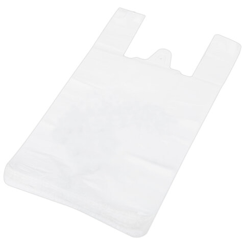 Пакет "майка" КОМПЛЕКТ 100 штук, 28+15х55, ПНД белый, 15 мкм, LAIMA, 700787