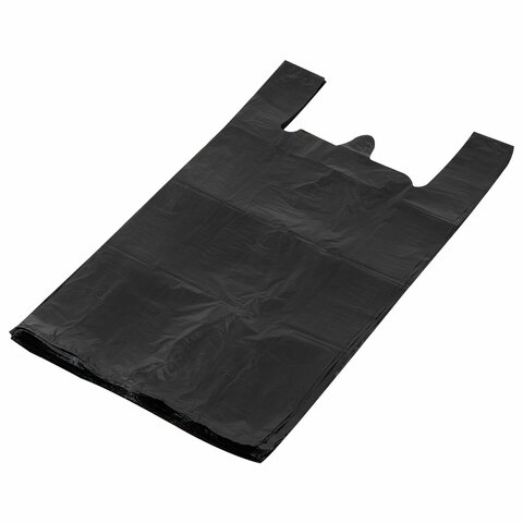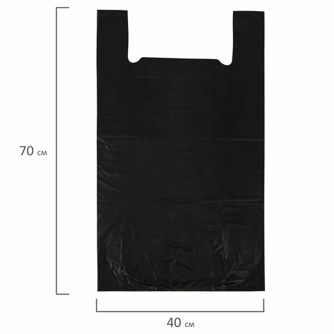 Пакет "майка" КОМПЛЕКТ 50 штук, 40+18х70, ПНД черный 25 мкм, LAIMA, 700792