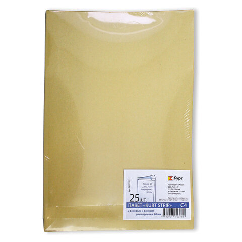 Конверт-пакеты С4 объемные (229х324х40 мм), до 250 листов, крафт-бумага, отрывная полоса, КОМПЛЕКТ 25 шт., 381227.25