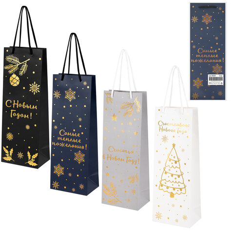 Пакет подарочный (1 шт.) новогодний, 13x9x36 см, "Bottle #2", голография, ассорти, ЗОЛОТАЯ СКАЗКА, 592429
