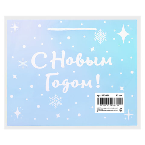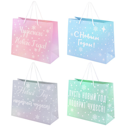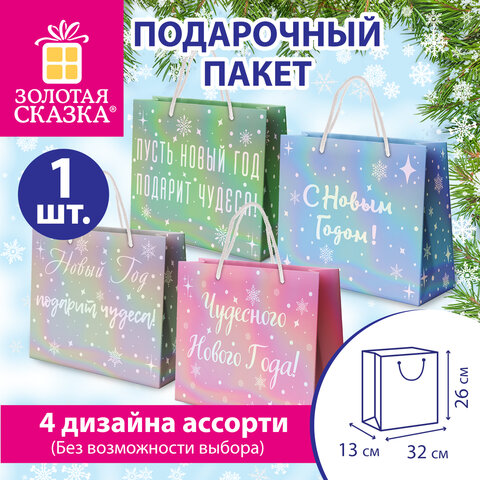 Пакет подарочный (1 шт.) новогодний, 26х13х32 см, "Сияние", ГОЛОГРАФИЯ, ассорти 4 дизайна, ЗОЛОТАЯ СКАЗКА, 592426